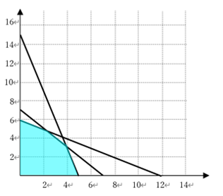 原料A: \(x+2y≦12\)