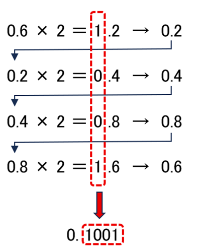 10進数の小数を、2進数に変換するには、