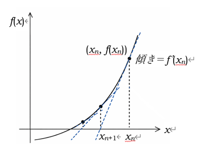 この図はニュートン-ラフソン法の考え方を確認する上でも重要ですね。