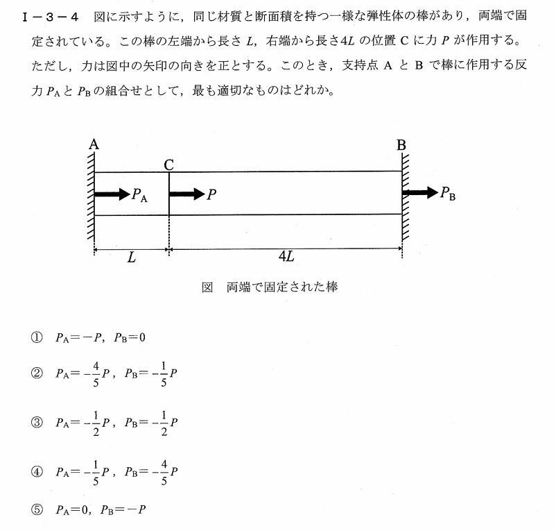 ツトムさん先生、この問題...棒の両端が固定で、途中の点Cで力\(P\)が右向きに作用しています。