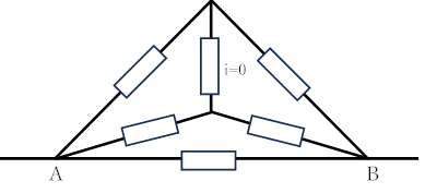 対角の抵抗が\({R} \)で同じなので、ホイートストンブリッジ回路ですね。